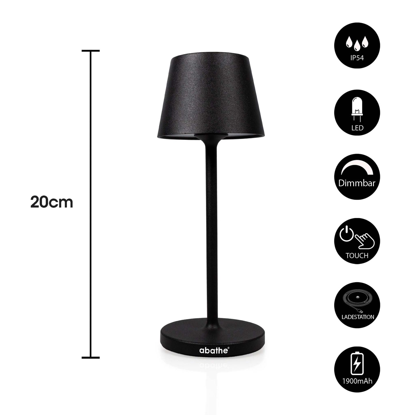 • Sichtfreie Höhe: Die abathe LED Akku-Tischleuchten haben eine sichtfreie Höhe von 25,5 cm, damit sie nicht im Sichtfeld ist, wenn Sie am Tisch sitzen und mit Ihrem Gegenüber sprechen.